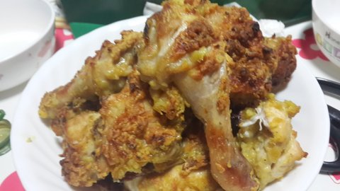 간장양념 말고 이번엔 기본간만 한 다음 튀김가루에 카레가루 섞어서 오븐에 구웠음.