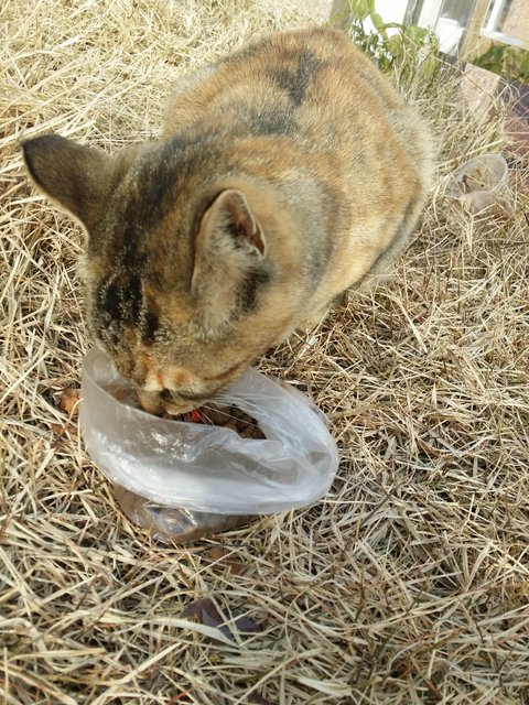 보통 길고양이들은 경계심이 심하지 않나요? 얘는 그냥 밥 먹는 거에 심취해서 저희 강아지가 짖든 제가 다가가든 신경도 안쓰더라고요.