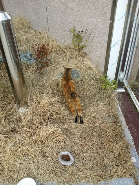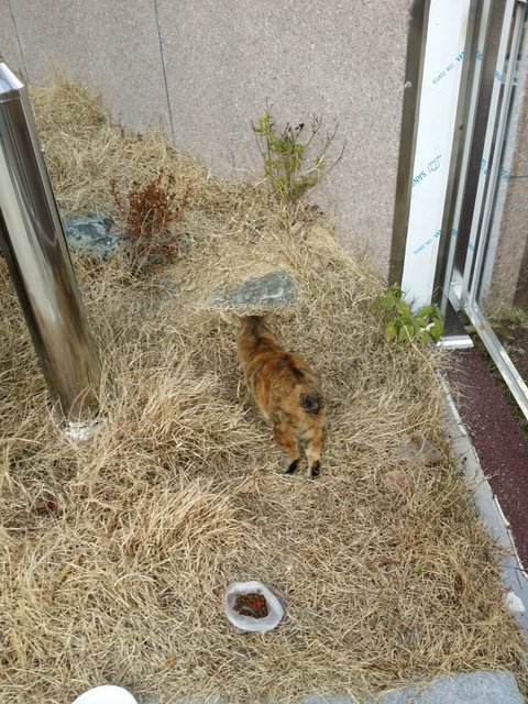 다 먹은거 같아서 남은 사료랑 물을 사람 안보이는 곳에 옮기려고 했더니 휙 따라와서는 그 자리에 앉아 발라당 누워 애교도 부리는데 누가 키우던 고양이 같았어요.