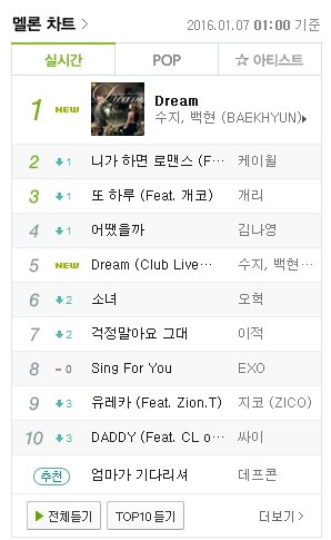 수지 백현 멜론진입 1위