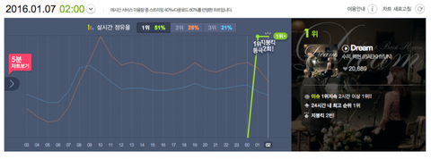 백현 2시챠트도 지붕킥 ㄷㄷ