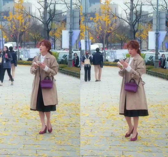 웨이브 머리에 트렌치코트에 버건디백까지 여신템 풀장착한 너란 녀성…