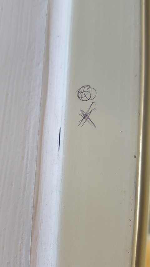 아니 엑소관련이 아니긴한데 내가 오늘 어디 나갔다 들어오는길에 그냥 갑자기 뭔가 대문을 봐야될거같아서 대문을 봤거든??? 근데 대문옆에 사진처럼 낙서가 되있는거야 심지어 앞집도 앞집은 내가 이사온지 5달? 정도 됬는데 딱 한번봤거든?? 아마 집만사놓고 여기선 잘 안사나봐 아무튼 그런데 앞집은 우리랑 반대된 낙서가 되있고 동그라미가 딱 정확히 하나야 근데 우리집은 한 3개정도인 동그라미가 겹쳐져 있잖아 이게 뭘까ㅠㅠㅠ??? 막 도둑들이 표시하는거라는데 진짜 맞으면 어떡하지ㅠㅠㅠ???? 나 완전 심란해.... 아 맞다 그리고 우리집이랑 앞집 다 초인종옆에 8이라고 적혀있어.. 근데 앞집은 6인지 8인지 잘모르겠다