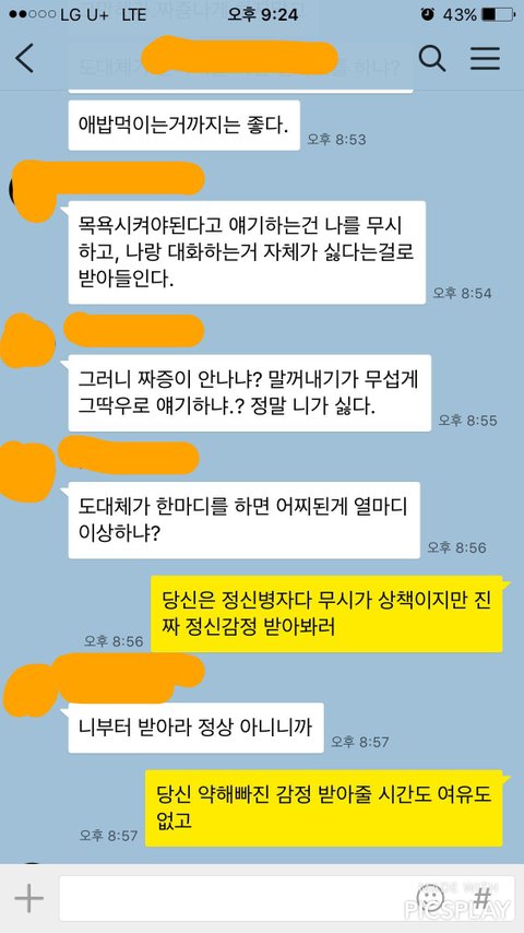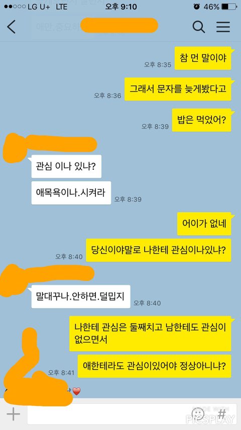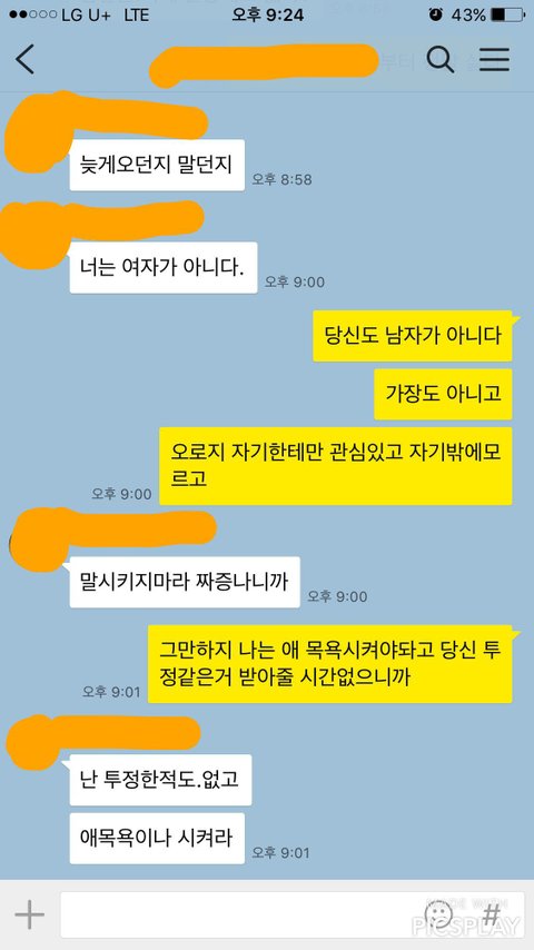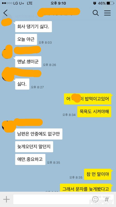 회사 돌아와서 8시 넘어 애 저녁 먹이고있는 중 야근한다고 힘들다고 문자가 옵니다 제가 애 밥먹이고있고 목욕시켜야한다하니 갑자기 불같이 화를 냅니다. 평소에도 단어하나 조사하나 끝단어하나 말투가 여성스럽지 못하다는둥 상냥하지 못하다하며 비난하기 일쑤고 참 저도 힘들어요 일도 육아도 가사도 함든데 남편 비위 맞추기가 제일 힘듭니다.