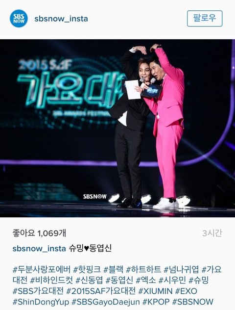 나 시우민톡에 자주 드나들어서 못 본 글이 거의 없는데 밑에 저 글은 지금봤어 ㅋㅋ 스브스가 가요대전 비하인드 컷을 올려줬나보네 근데 슈밍(하트)동엽신이라니!! ㅋㅋㅋㅋ 민석이가 잠깐이었지만 큰 무대에서 동엽신과 진행한 거 너무 기뻤음 다시 그런 기회가 꼭 올거라고 믿어!!! 짤은 밑에 글에서 데리고 왔어 >.<