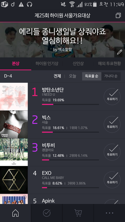 그래도 울 이삐들 계속 투표하는구나 ㅠㅠㅠ