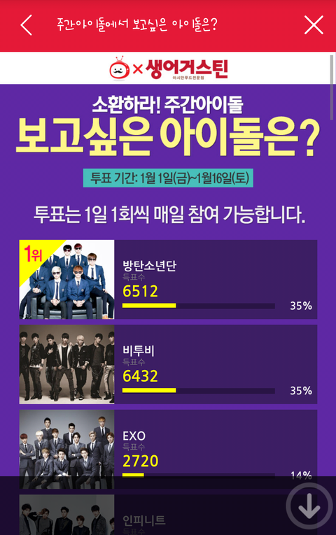 엑소 쇼타임이랑 주간아 투표
