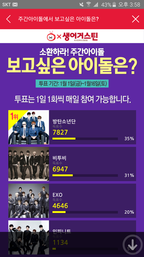 이거 투표 쇼1타임한개만하지말고 저거도 해야되!!!! 두개다 ㄱㄱㄱㄱ