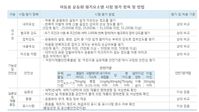 내구성, 기능성, 안전성, 실용성 등을 시험·평가하였습니다.