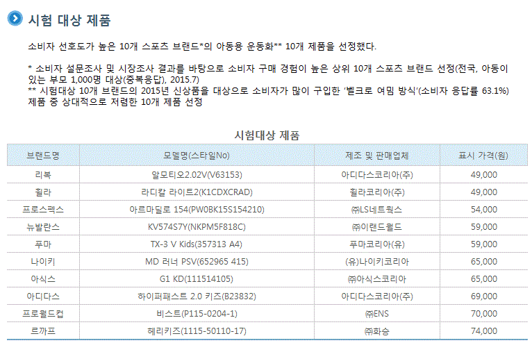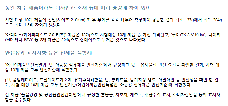 이에 한국소비자원은 소비자가 선호하는 ‘스포츠 브랜드 아동용 운동화 10개 제품’을 대상으로