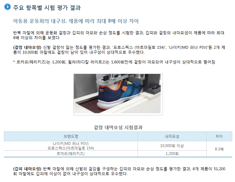 아이들 운동화는 성인 운동화와 다르게 객관적인 품질 정보가 부족해