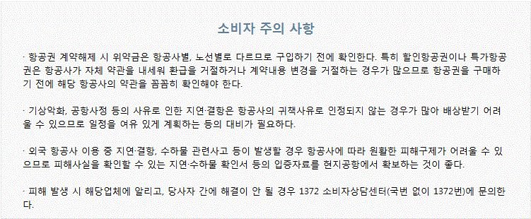 마지막으로 항공사 이용시 소비자 주의 사항입니다!