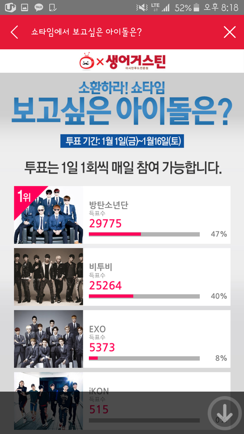 16일까지 1일1투표니깐 많은사람들이 참여해야 이길수있어