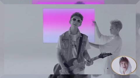 첫배경조명을보면파랑+분홍그리고윗부분에약간노랑빛을띄네요