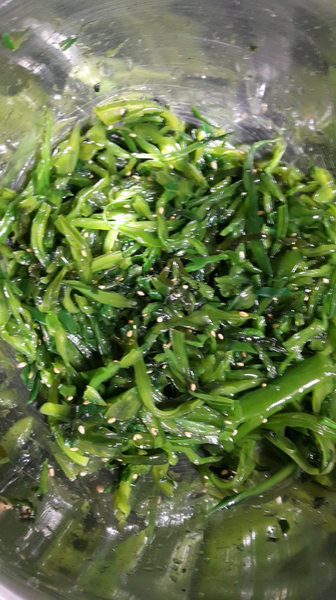 이건 미역줄기 초무침 입니다 식초,설탕,소금,깨소금 으로 했는데유 하시기전 줄기 살짝 데쳐주세요