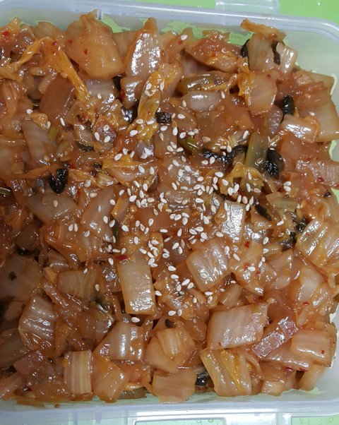 요건 작년에 담근 김치인데요 너무쉬어서 못먹을 지경... 혀가 마비되는 쉰맛에 포기하다 물에 빨아 행궈서? 잘게썰어 굴소스 고추장 버터에 볶았더니 맛났습니당ㅎㅎ 김치덮밥 필요하실때 김치볶음에 참기름 참깨 고추장 넣으시고 계란 반숙이면 끝장이죠^^?