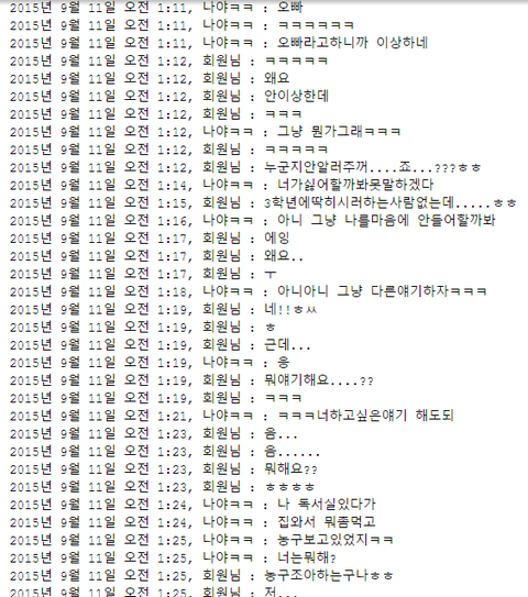 9월 초쯤 내가 페북에 오픈채팅링크를 두 번 올렷엇어.맨처음 올린 링크에 5개쯤 왓고 그 중하나가 잠깐 인사(?) '안녕' 식으로 하고 다음에 연락하겟다면서 채팅방을 나갓엇어. 같은학교 3학년이라는 것만 알려주고. (학교 공학)바로 다음날 학교에서 친구랑 오픈톡얘기를 하다가친구가 '혹시 그 이00오빠 아니야?' 라고 하고 그 친구의 (현)남자친구(고3)한테 물어보니까 맞대.근데 난 모르는척을햇어.