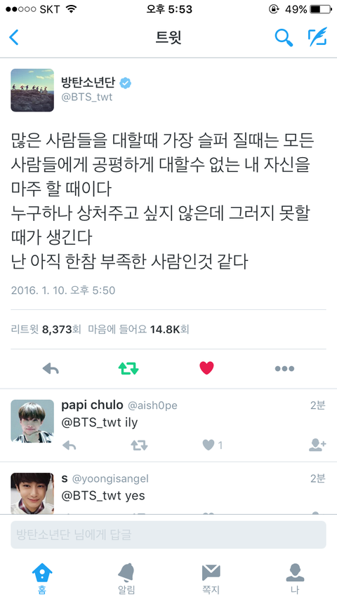 자기속마음을 말하고있는윤기는 무슨생각을하고있을까..