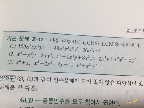 1번 최소공배수가 왜 720 a^3 b^2 x^2 y^5 인지 설명좀..제발ㅠㅜ