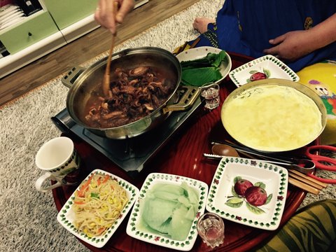 소고기전골 잡채 동그랑땡 파김치..제 생일이엿던거 같아요