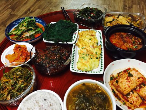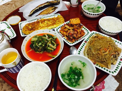 마지막 고등어조림 잡채 소고기무국 열무김치 두부조림..
