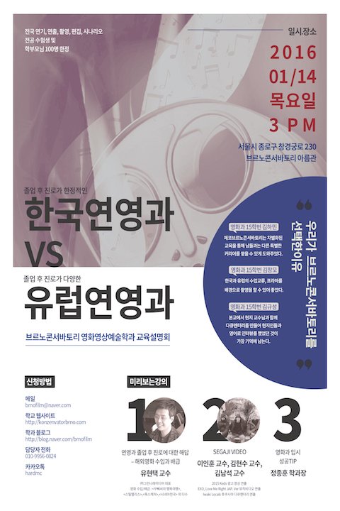 이번에 본 과에서 연극영화과 입시생들을 위한 한국연극영화과와는 다른 유럽연극영화과의 차이점을 설명하고,