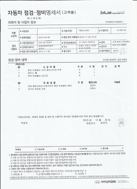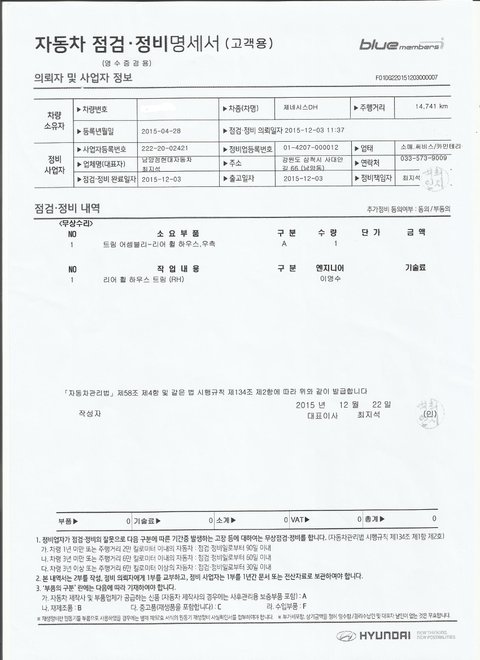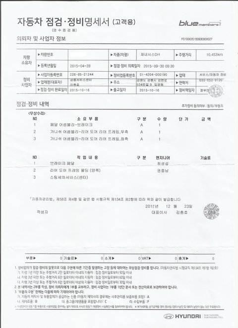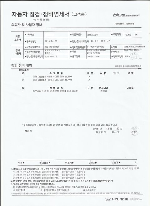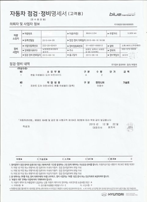 (자세한 수리내역은 하단의 수리내역서를 참고하시면 됩니다.)