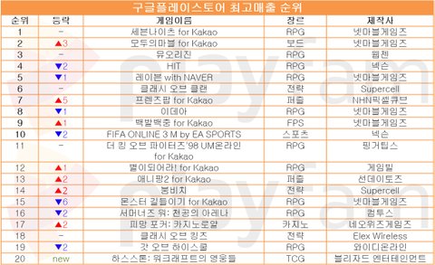 한편, 7위를 차지한 '프렌즈팝 for Kakao'가 합성 시스템을 예고하면서 5계단이나 상승하는 모습을 보였다.