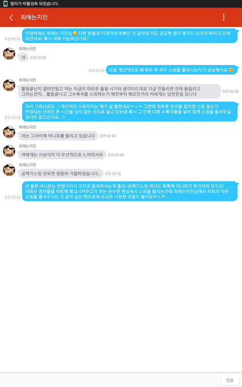 나 대답 잘한건지 모르겠어ㅠㅠㅠㅠㅠㅠㅠㅠㅠ 비아냥조로 알아들으셨으변 우짜지... 참고로 스밍은 피씨야!