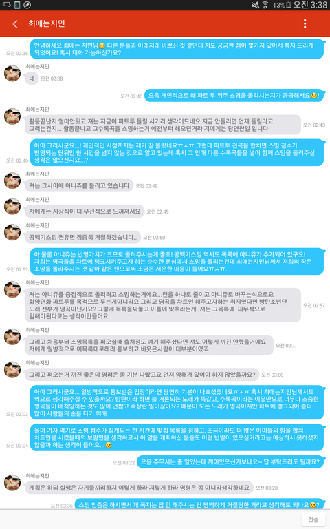 방금 ㅍㄷㅇ 지웠어... 최대한 곱게 말했는데도 효과가 없네 으음 괜히 나때문에 공백기스밍에 대한 안좋은 선입견이 짙어지신 것 같아 죄책감이 커ㅜㅅㅜ... 이삐들 너무너무 미안하구 우라까라라두 열심히 해보자♡ㅅ♡ 4시 차트 너무 기대된다! 이삐글 너무 미안하구 항상 고마워♡ㅠㅅㅠ♡