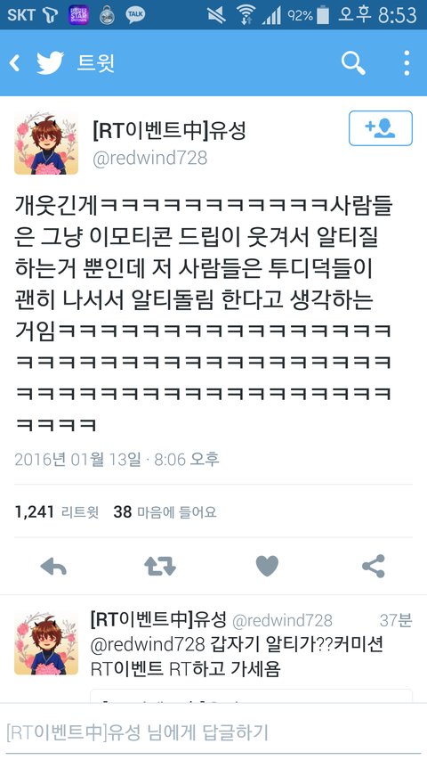 뭐라고 할까 ㅈㄴ 어이없네 웃기긴 뭐가웃겨 시ㅂ아 투디덕 발암ㅅㅂ;;;;;이와중에 영업한다고ㅈㄹ