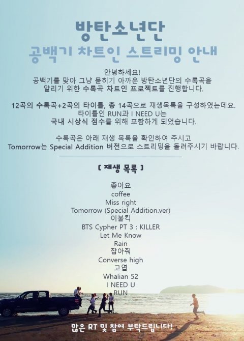지금 나도 홍보글 리트윗 부탁드리는들 엄청 싸지르는데 몇몇사람이 그냥 곡 리스트만 첨부했는데 투모로우는 스페셜 버전인거 설명해야 분산안되니까 이거 꼭 첨부해!!!!!