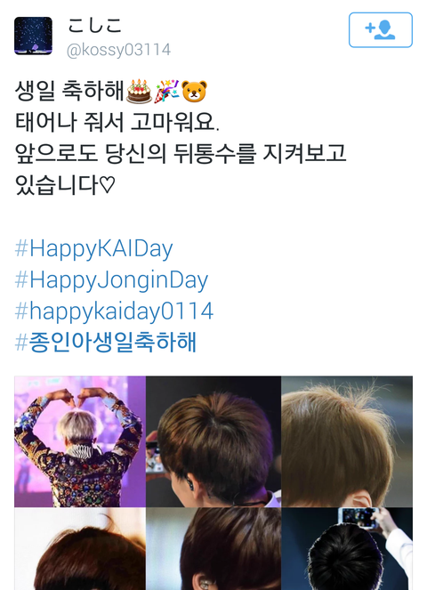 어떤 일본팬이 종인이 생일축하 트윗 남긴거 보는데