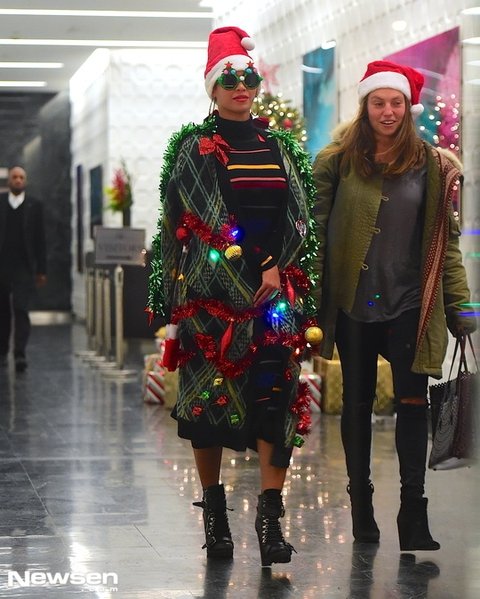 섹시의 아이콘 욘세언니가 크리스마스날 인간 트리로 변신했었음