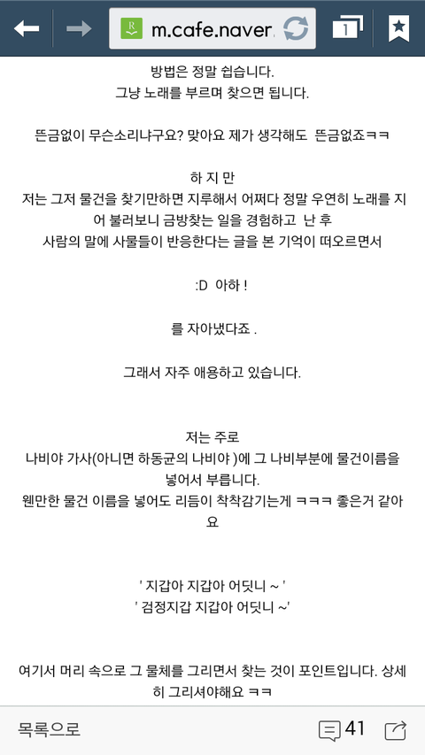 들어가보니까 밑에사진대로 노래부르면서 물건을부르며찾으면 쉽게찾아진다고..그물건도 그소릴듣는다나뭐라나