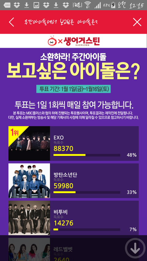 투표도 안했는데 왜 순위부터 뜨고지랄임 설레게