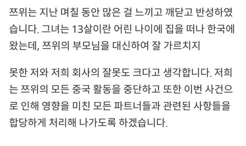 +쯔위 사과문 보고 중국어라 뭐라고 하는지는 모르겠었는데 얼굴이 반쪽이 됫더라ㅠㅠㅠㅠ 쯔위가 국적이 대만이니까 자기 국기 흔들면서 소개한 것 뿐인데 이렇게 일이 커질 줄이야ㅠㅠㅠ 쯔위 힘내ㅠㅠㅠ♡ 빨리 해결 되길.....