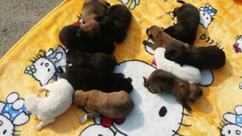 강아지가 12마리나 낳았어요;;;;;;; 색깔별로 6,4,2 ㅎㅎㅎㅎㅎㅎ 긔욥죠??