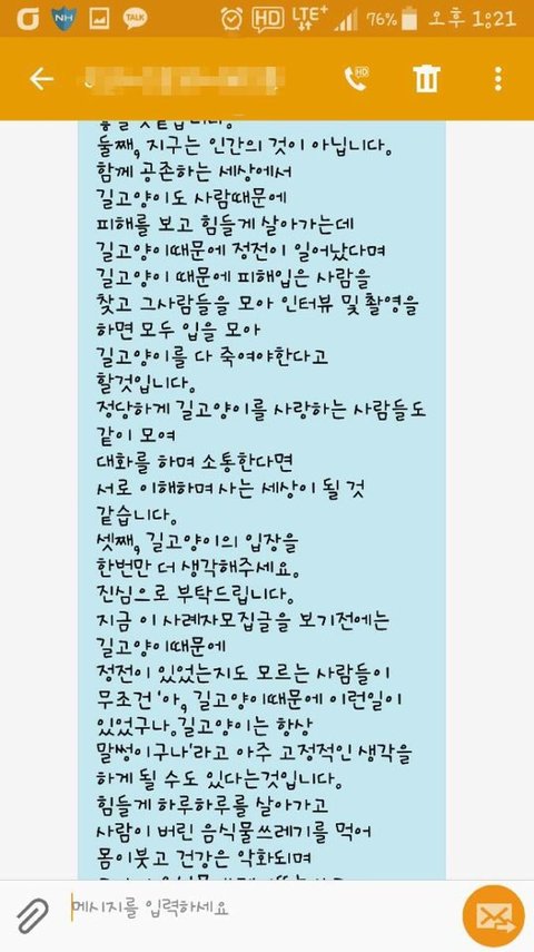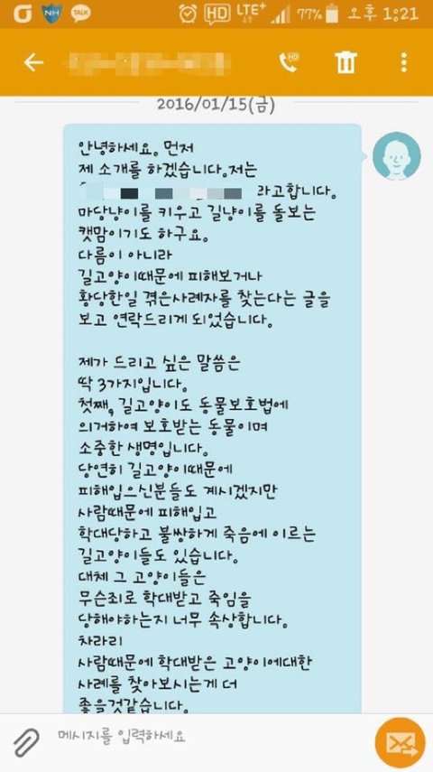 길고양이들이 없어서 쥐들이 득실대고 패스트 같은 전염병이 돌아봐야지 길고양이들이 고마운 줄 알지 ㅉㅉ 쓰래기 같은 것들.... 길 고얕이들 밥 주는 것도 바라지 읺아 그냥 냅둬...!!!!!! ㅉㅉ 길고양이들이 피해만 주는 줄 알고 있음... 길고양이들이 없으면 쥐들이 득실 댐... 수지 ㅊ풍적천동 하천에 손목 만한 쥐들이 득실 거임... 근데 땅위로 못 나오는 건 고양이들 때문임.. 고양이들한테 감사하게 생각 하길 바람.