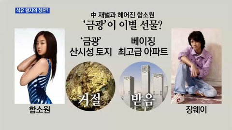 함소원에게 준것으로 알려져 있다. 산시성 토지는 거부하고 최고급 아파트만 받음.