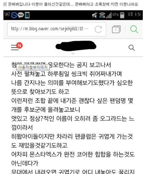 진짜 몬스타팬 한명이 중요한 정보를 나한테