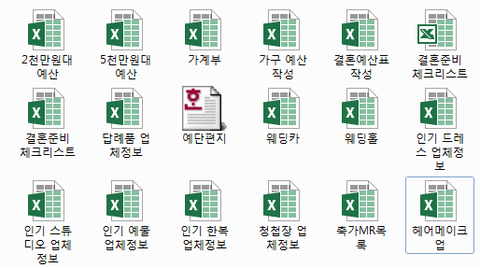 결혼준비체크리스트, 가계부, 예산정리표, 스드메, 예물, 청첩장, 웨딩홀, 웨딩카, 한복 등등 정리했구요,