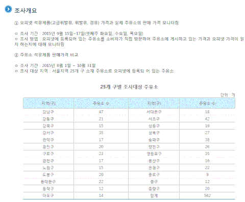 #오피넷 서울시 25개 구별 주유소 석유제품 판매 가격 비교