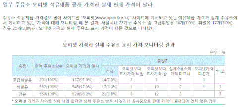 #일부 주유소 오피넷 석유제품 공개가격과 실제 판매가격이 달라