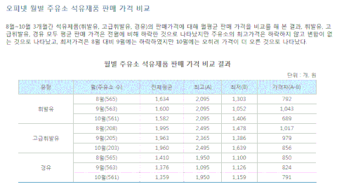#오피넷 월별 주유소 석유제품 판매가격 비교