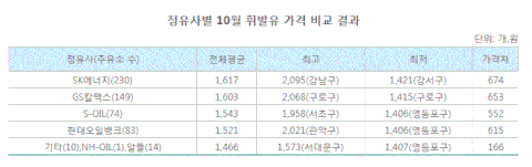 SK에너지가 가장 비싼 것으로 나타났고,