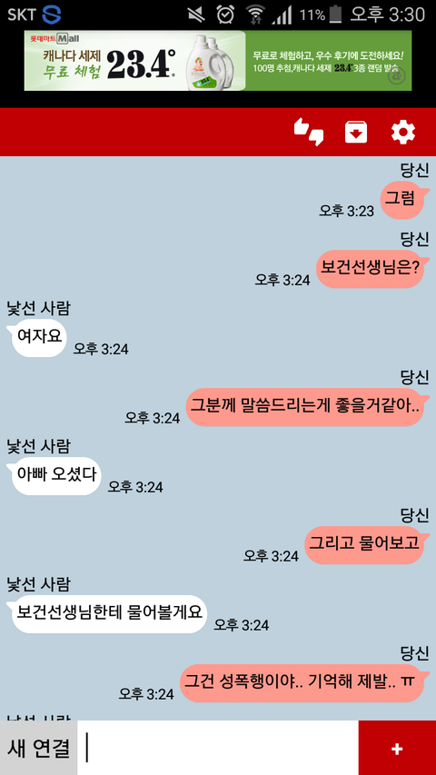 아직 삽입은 안한거 같아서 다행스러운데 일단 제가 보건선생님이랑 얘기해보라고 해두었구요. 톡 아디를 얻어서 더 얘기해보려고 햇는데 아빠가 왓다면서 가버리네요.. 기사로만 봣던 근친 성폭행을 직접보니 소름이 쫙돋네요.. 제발 더이상 당하지 않았으면..
