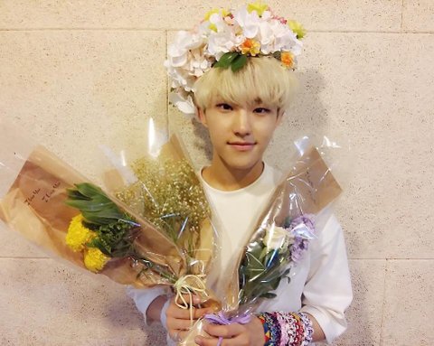 5일 후 생일 호시(06.15) 케이크 대신 꽃을 든 남자 팔찌는 뭐 저리 많앜ㅋㅋㅋㅋㅋㅋㅋ