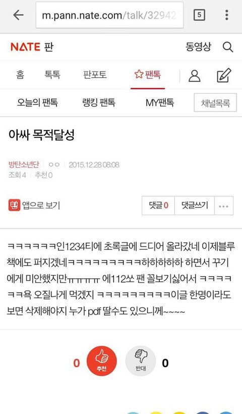 ㅈㄱ 영ㅈㅅㅈ 인티에 올라온 직후에 올라온 글(타팬