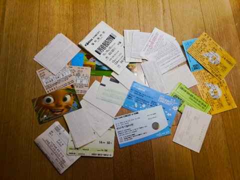 난 영수증 안버리고 모으기ㅋㅋㅋㅋㅋㅋㅋ 왜 쓰레기 갖고 다니냐고 그러는 애들도 많은데ㅠㅠ 소중했던 것만 들고다님... 그날이 너무 좋고 행복했고 그러니까 뭐 화장품 산 영수증 이런거말고 콘서트 티켓이나 너무 좋은날이나 암튼 이런거 모아 ㅎㅅㅎ너넨 뭐있니 쓸데없는 취미